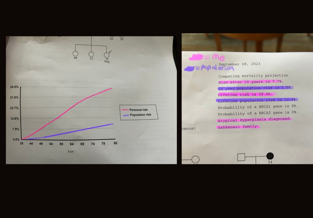 What we learned was, the bilateral mastectomy is my best course of action. The non-surgical options include taking Tamoxifen for five years and/or increase screenings (which I have done the increased screenings). Tamoxifen can lower the risk of breast cancer by 50%, which still puts my risk at 20%. Based on the side effects of the medication, and the fact that I’ll still be at a 20% risk, this option isn’t worth it for me.